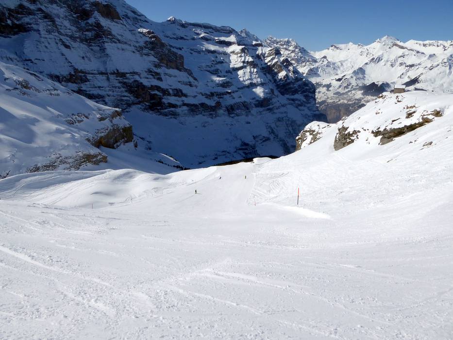 Vom Eigergletscher führt die Piste mit bis zu 71% Gefälle hinunter Richtung Wengernalp.