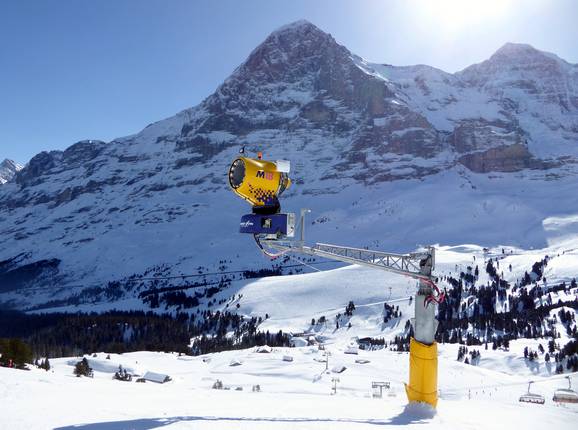 Die Hauptabfahrten befinden sich über 1500 m und können mit einer leistungsfähigen Schneeanlage beschneit werden. Die Talabfahrten hinunter nach Grindelwald und Wengen sind komplett beschneit. Somit ist das Skigebiet Kleine Scheidegg/Männlichen als sehr schneesicher einzustufen.