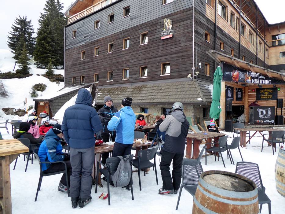 Bei guter Musik und Getränken kann man hier bereits am Nachmittag zum Après-Ski übergehen. Unter freiem Himmel heizt hier auch ein DJ ein.