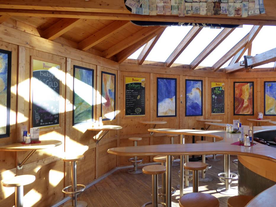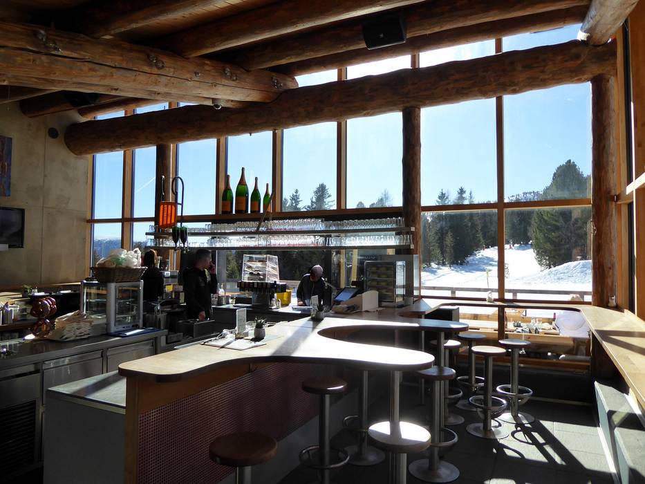 Das spektakuläre Gebäude ist mit der Bar und der Sonnenterrasse gut zum Après-Ski geeignet. DJs sorgen für gute Musik.