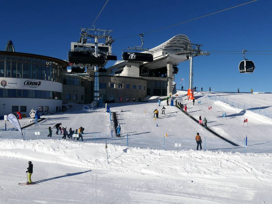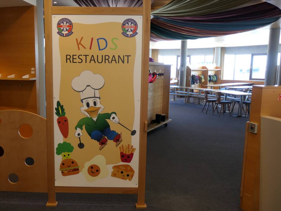 Das Kinderland der Skischule Kronplatz befindet sich direkt unterhalb des Restaurants Kron beim Kronplatz-Gipfel. Es bietet Zauberteppiche und lustige Figuren. Ein direkter Zugang zum Kinderrestaurant ist ideal für die Kleinen.