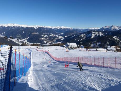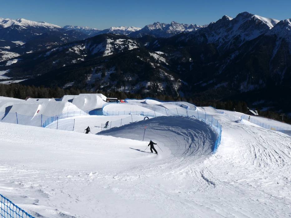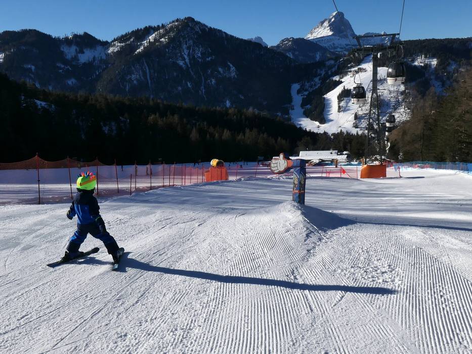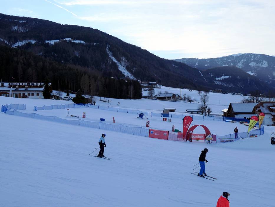 Etwas oberhalb der Talstation in Reischach befindet sich das großzügige Übungsgelände. Es bietet Zauberteppiche, Wellenbahnen, einen Abenteuer Parcours und ein Kinderland der Skischule Kronplatz.