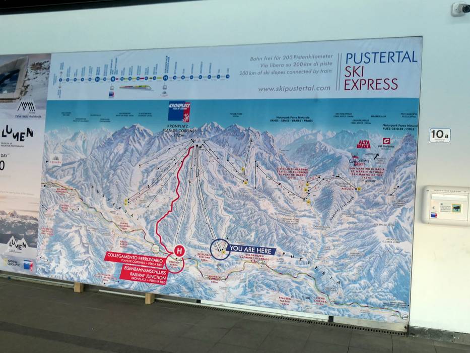 Der Pistenplan bildet das Skigebiet Kronplatz sehr gut ab. Es sind alle Pisten und Lifte eingezeichnet und beschrieben. Auf der Rückseite sind wichtige Highlights angegeben.
