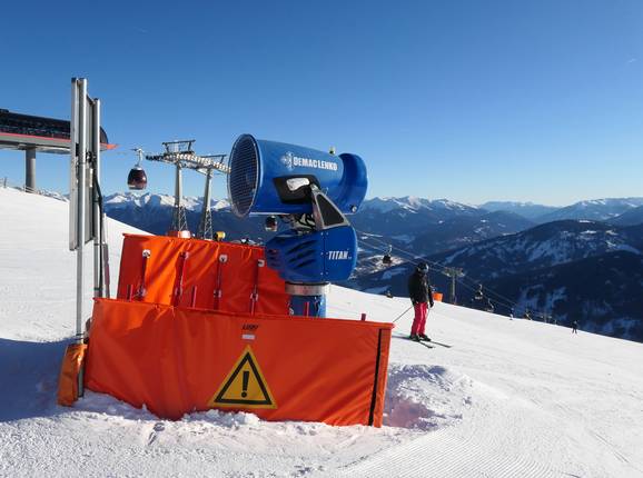 Das komplette Skigebiet am Kronplatz kann beschneit werden. Durch die lange Saison und aufgrund der Höhenlage gilt der Kronplatz als sehr schneesicher.