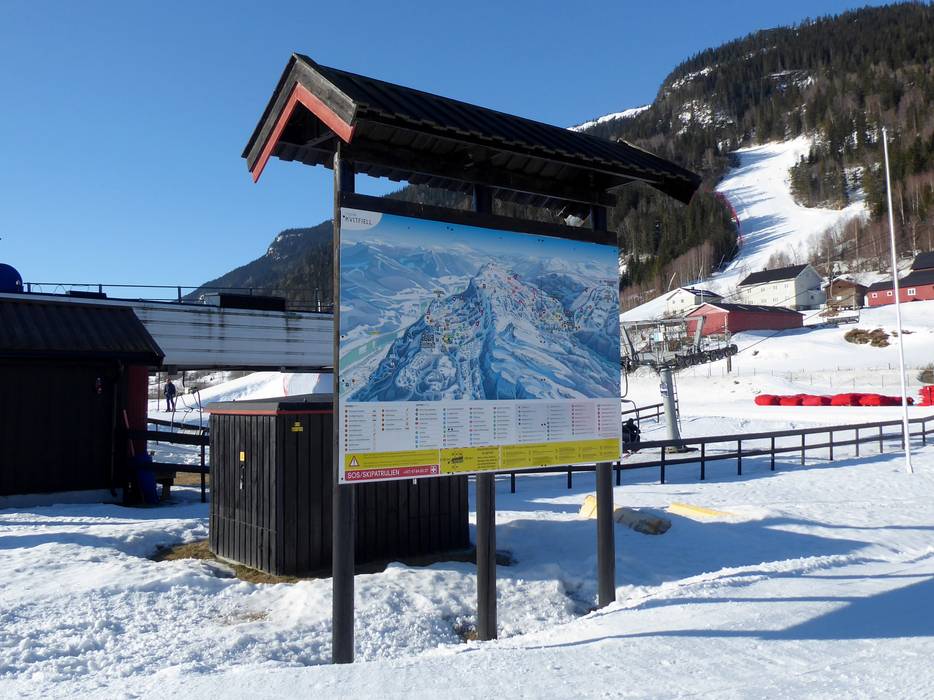 Im Skigebiet Kvitfjell sind die Pisten gut ausgeschildert. An wichtigen Punkten findet man Pistenpläne. Aktuelle Betriebsinformationen zu den geöffneten Liften und Pisten findet man nur online in der App oder auf der Webseite des Skigebiets.