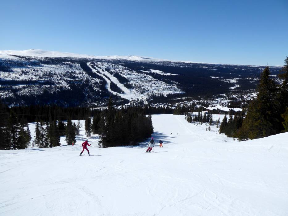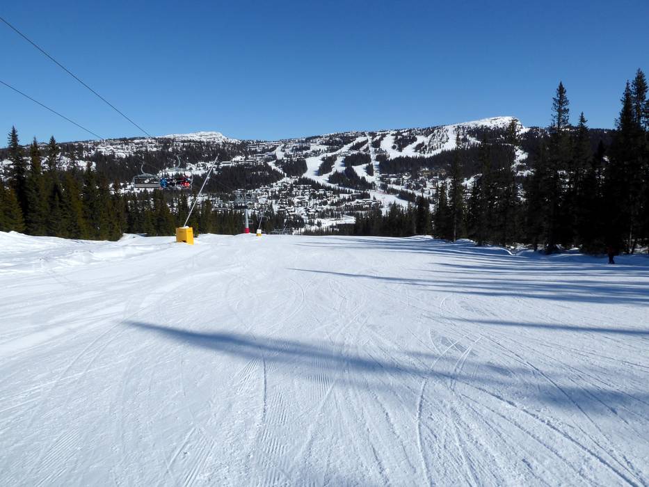 Die schwere Talabfahrt Olympiabakken kann über den mittelschweren Skiveien (Ziehweg) umfahren werden.