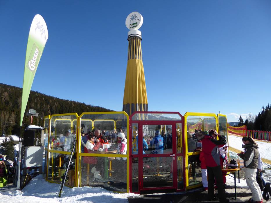 Der Après-Ski-Treff am Lachtal. Die Schirmbar ist täglich geöffnet und ab Nachmittag ist Partystimmung angesagt. Bei Schönwetter öffnet die Sky Bar ihr Dach.