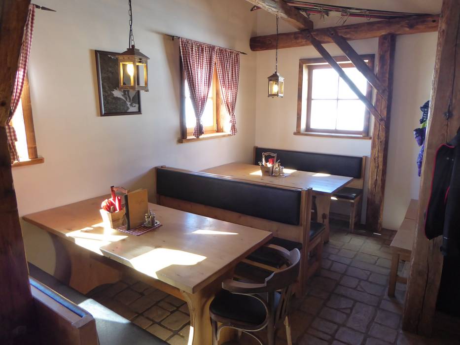 In der urig eingerichteten Skihütte gibt es hausgemachte Hüttenschmankerl.