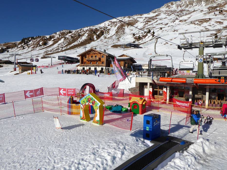 An der Bergstation der Gondelbahn von Predazzo gibt es einen betreuten Kindergarten mit Förderband und Kinderpiste.