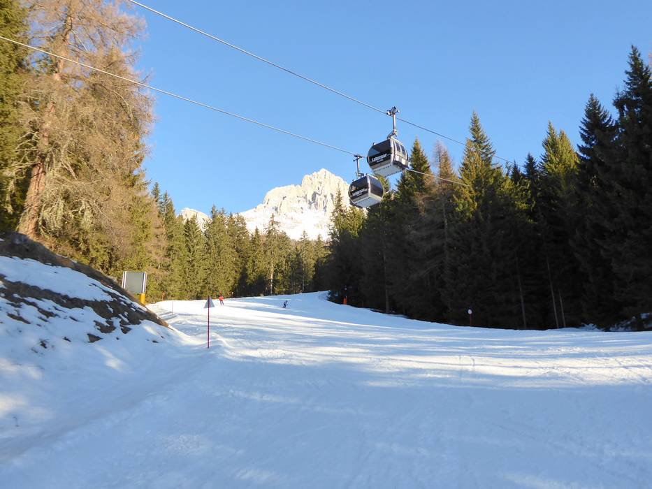 Nach Obereggen und Pampeago führen mehrere Talabfahrten. Nach Predazzo gibt es keine Talabfahrt. Man muss hier mit der Gondelbahn ins Tal fahren.