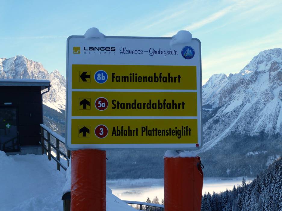 Orientierung (Pistenplan, Informationstafeln, Ausschilderung) und Sicherheit im Skigebiet Lermoos – Grubigstein Pistenplan und Übersichtskarten