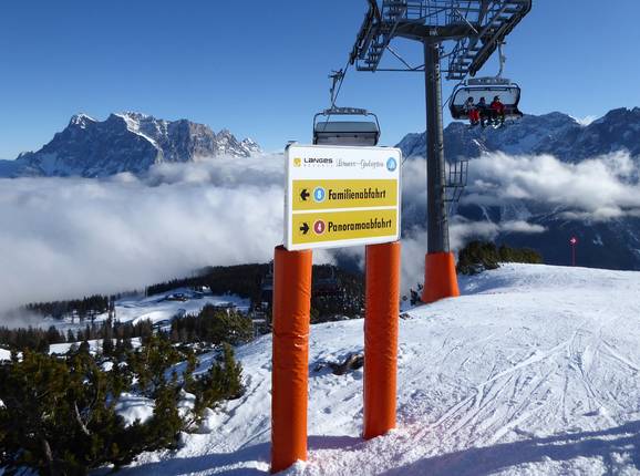 Man findet sich sehr gut im Skigebiet zurecht. An allen wichtigen Punkten sind Schilder mit Informationen angebracht. Man findet ausreichend Pistenpläne im Skigebiet aufgestellt.