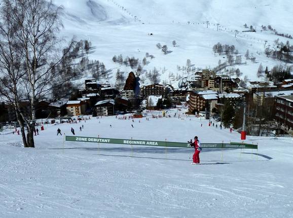 In Les Deux Alpes gibt es viele Angebote für Anfänger. Es gibt mehrere kostenfreie Skilifte im Tal sowie ein großes Anfängergelände entlang des Ortes. Im Sektor Crêtes befindet sich ein weiteres großes Gelände samt überdachtem Förderband. Dazu kommen zahlreiche Pisten mit dem Label "Ski Tranquille" (ruhiges Fahren), mit denen fast das gesamte Skigebiet erschlossen wird. Anfänger können bis zum höchsten Punkt des Skigebiets und wieder zurück auf blauen Pisten fahren.