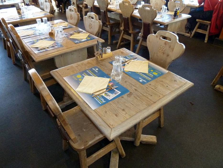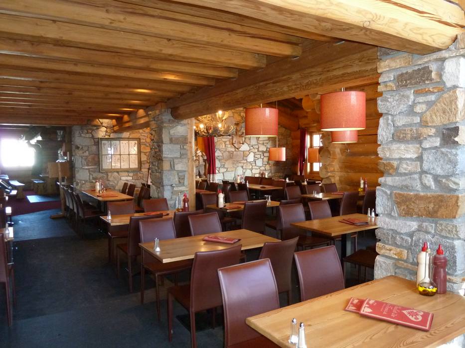 Im Chalet de la Toura gibt es sowohl à-la-carte-Essen mit Service im bedienten Teil des Restaurants als auch Fast Food zum Mitnehmen. Im Bedienrestaurant hat man natürlich auch einen angemessenen Weinkeller.