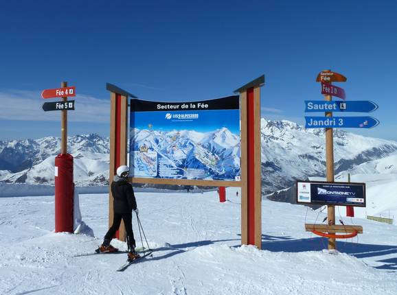 Orientierung (Pistenplan, Informationstafeln, Ausschilderung) und Sicherheit im Skigebiet Les 2 Alpes