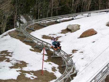 Der 1,3 km lange Alpine Coaster ist beliebt bei alt und jung. Rasant geht es über zwei Superkreisel und viele Steilkurven wieder zu Tale.