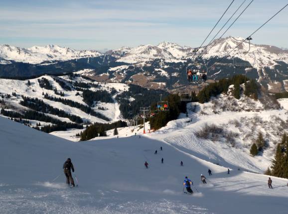 Pointe de Chéry, der sonnige Hausberg von Les Gets Wie der Name schon sagt gibt es viel Sonne Blick vom 2002m hohen Chamossière Blick auf den Mont Blanc von Les Gets aus Die Pisten in Châtel Moderne Lifte in Châtel Blick auf Les Crosets Col de Gets 1152m Grenzüberschreitendes Skigebiet