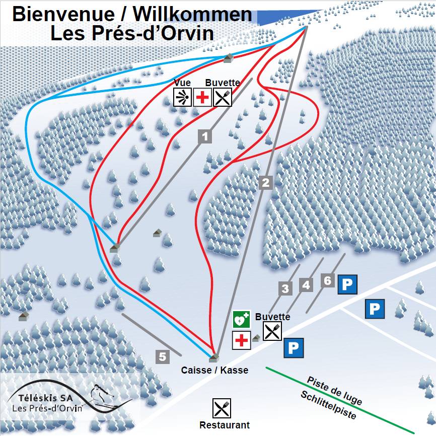 Pistenplan Les Prés d'Orvin Saison 2025/2026