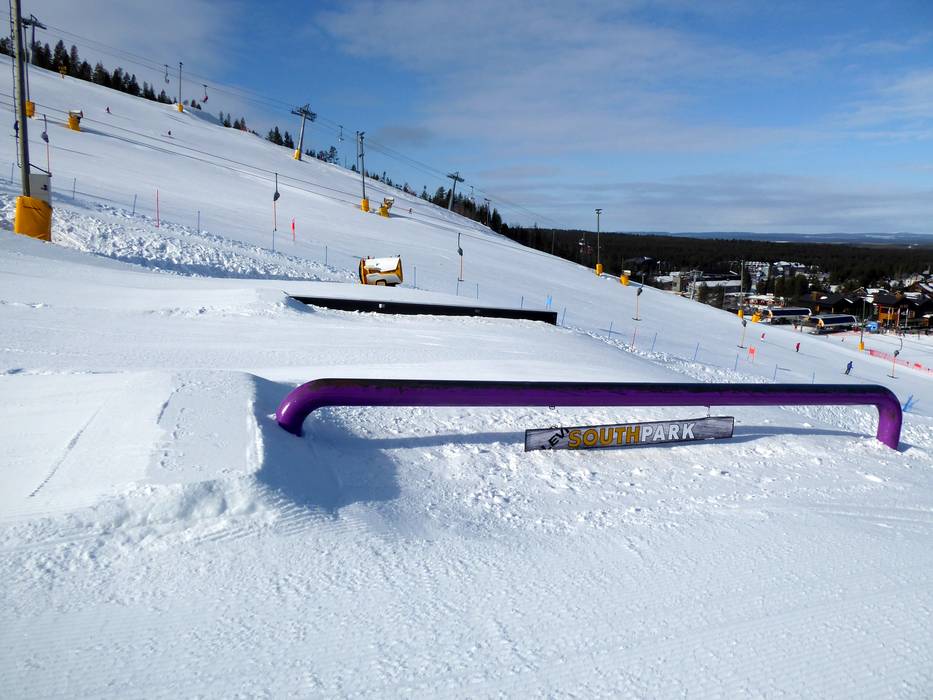 Der Levi South Park befindet sich im oberen Bereich der Sechsersesselbahn Levi South. Der attraktive Park ist rund einen Kilometer lang und ist der Traum eines jeden Freestylers und Snowboarders. Hier bleiben keine Wünsche offen.