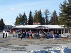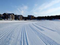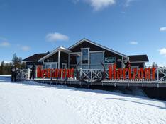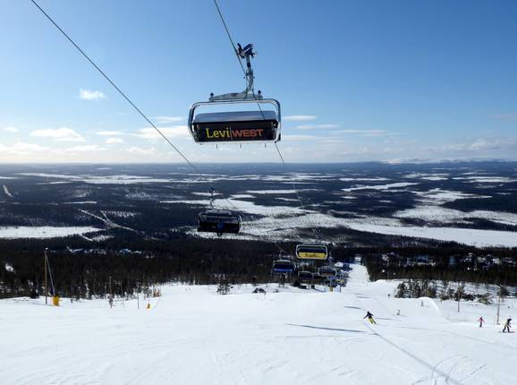Front Slopes mit Blick auf Levi Weltcuppiste und Gondelbahn Levi 2000 Santa Claus House im Skigebiet Levi Blick über Lappland vom Skigebiet Levi
