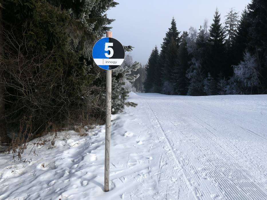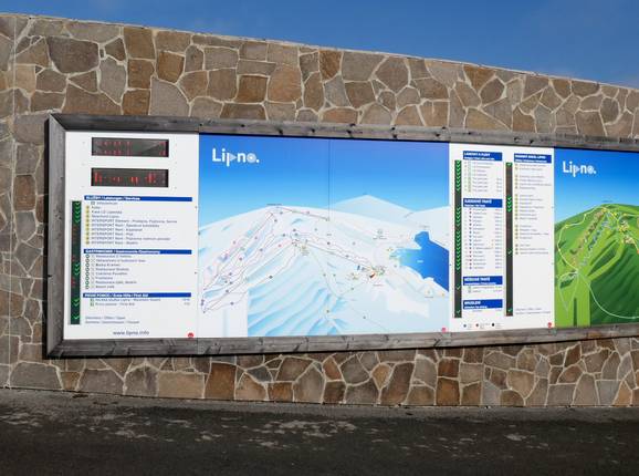 Orientierung (Pistenplan, Informationstafeln, Ausschilderung) und Sicherheit im Skigebiet Lipno