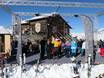 Das Stalet hat eine große Sonnenterrasse sowie Schirmbar mit viel Platz zum Feiern und Tanzen. Die Lage direkt an der Talstation ist ideal.