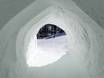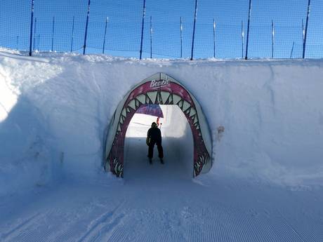 Die Spaßpiste The Beach begeistert mit Steilkurven, Tunnels, Hindernissen und Abklatschfiguren. Sie liegt beim Carosello 3000.