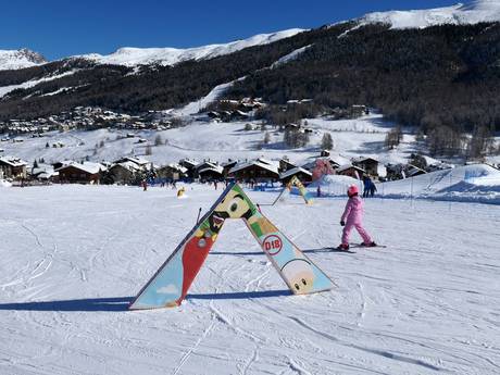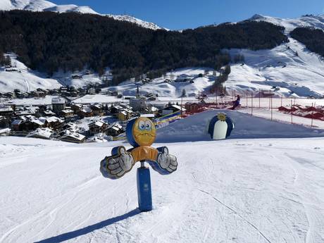 Livigno ist ein ideales Ziel für einen Familienurlaub. Das Skigebiet hat zahlreiche Skischulen für Kinder, Kinderländer, Kinderbetreuung, Spielplätze im Schnee, Zauberteppiche und viele leichte Pisten am Ortsrand von Livigno. Zahlreiche Attraktionen im Skigebiet, die speziell für die jüngsten Skifahrer sind, begeistern die ganze Familie.