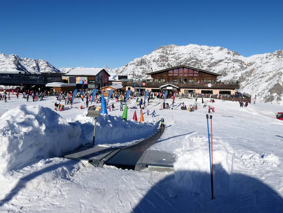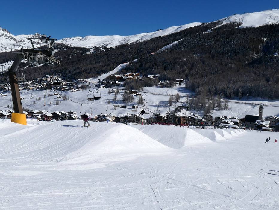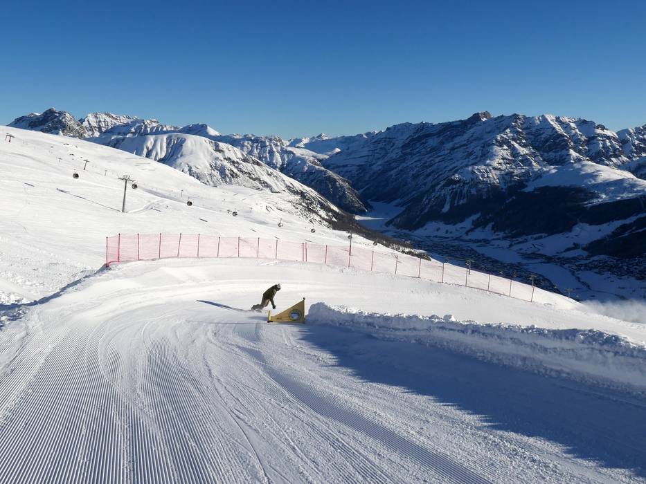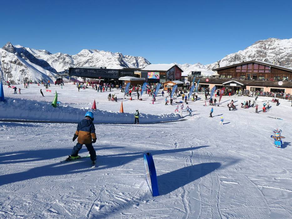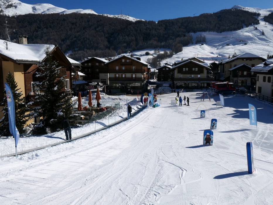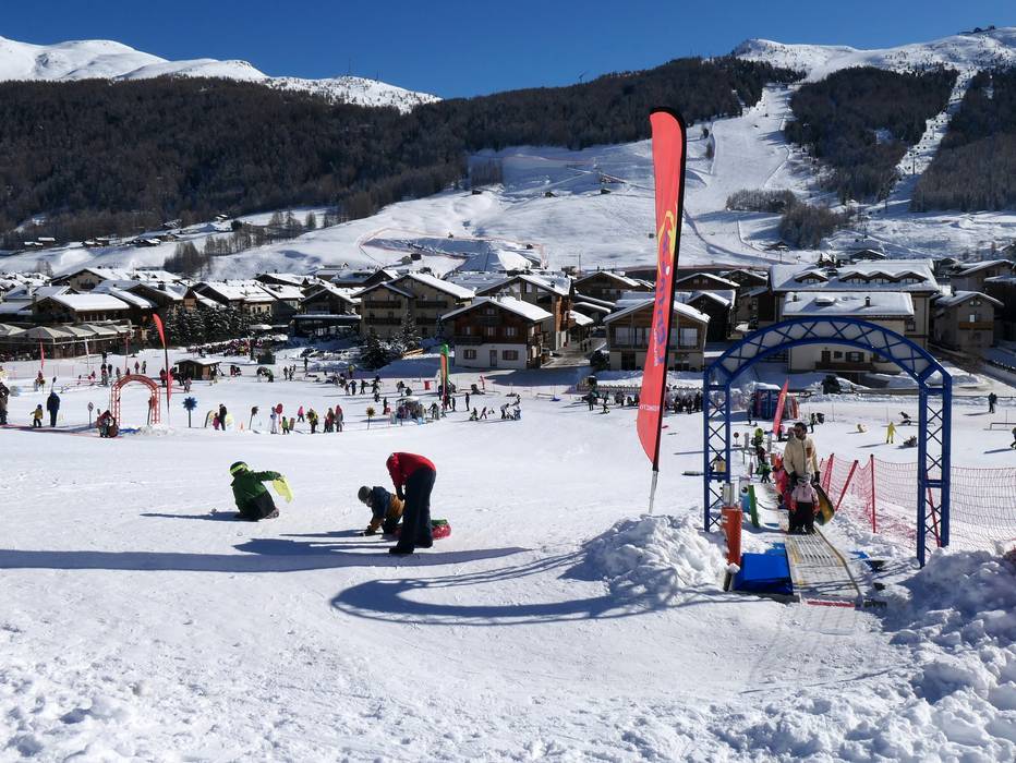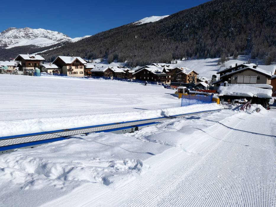Zahlreiche Zauberteppiche und Übungsbereiche sind im gesamten Skigebiet verteilt, auch direkt am Ort Livigno.