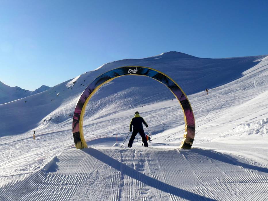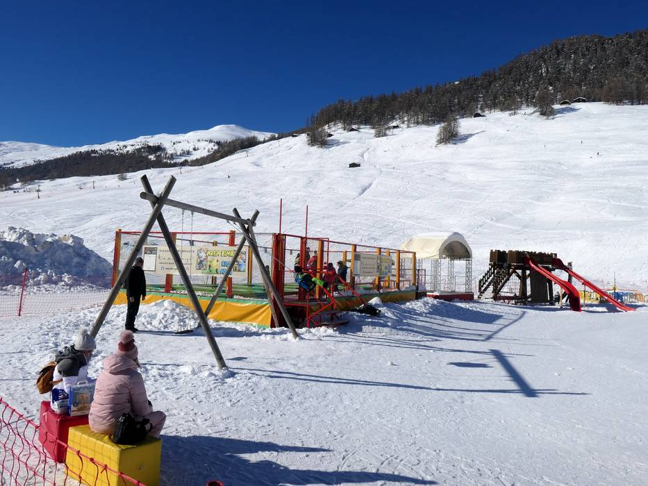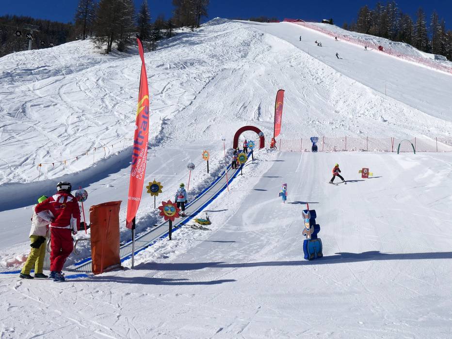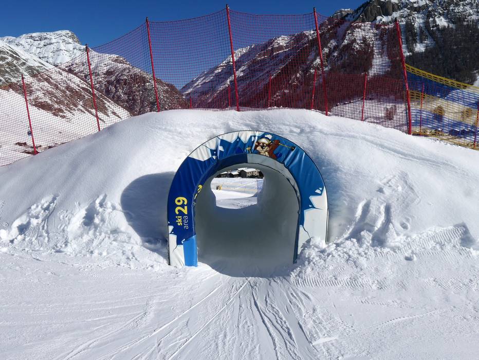 Der Hindernis-Parcours für Kinder befindet sich im Skigebietsteil Mottolino.