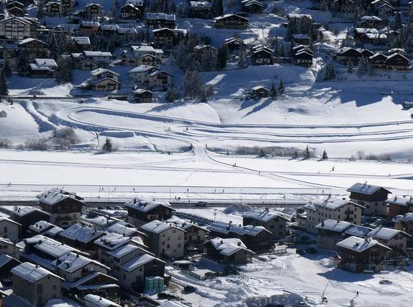 Sonnige Loipen führen direkt durch den Ort von Livigno. Profisportler trainieren in der Höhe und Amateure genießen das herrliche Panorama auf die Bergwelt. Die Loipen sind aufgrund der Höhe schneesicher und die Langlaufsaison ist lang. Beim Langlaufstadion gibt es Umkleiden und Langlaufunterricht.