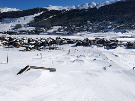 Livigno bietet erstklassige Snowparks am Mottolino und am Carosello 3000. Die Snowparks sind in der Szene auch aufgrund der Schneesicherheit sehr beliebt. Im Skigebiet sind weitere kleinere Snowparks verteilt. Vom Anfänger bis zum Profi wird hier alles abgedeckt. Zudem gibt es zahlreiche Hindernis-Parcours, Spaßpisten und eine natürliche Halfpipe (Naturbecken).