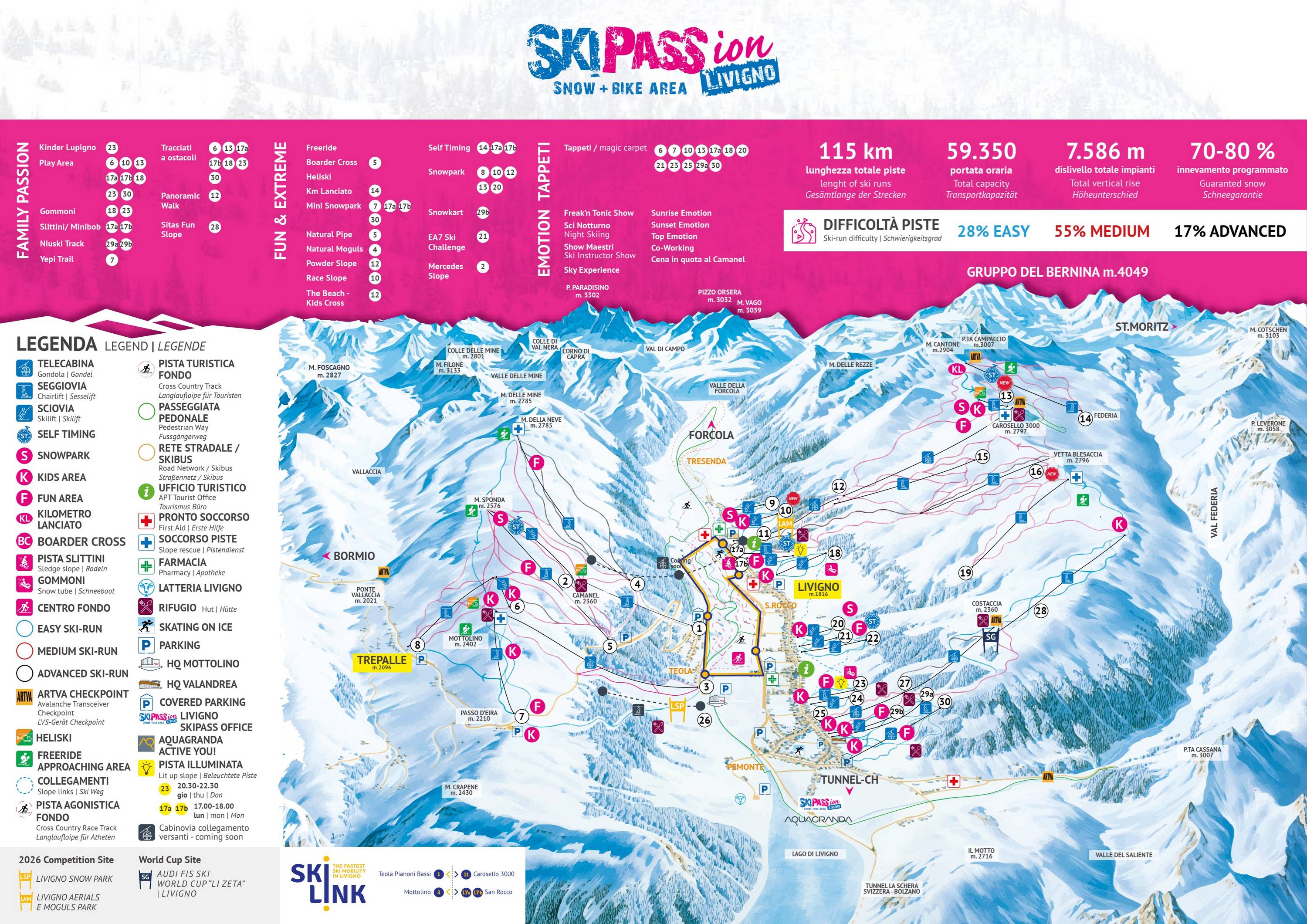 Livigno (0,3 km), San Rocco (0,1 km), Teola (0,5 km), Trepalle (0,6 km), Orte am Skigebiet