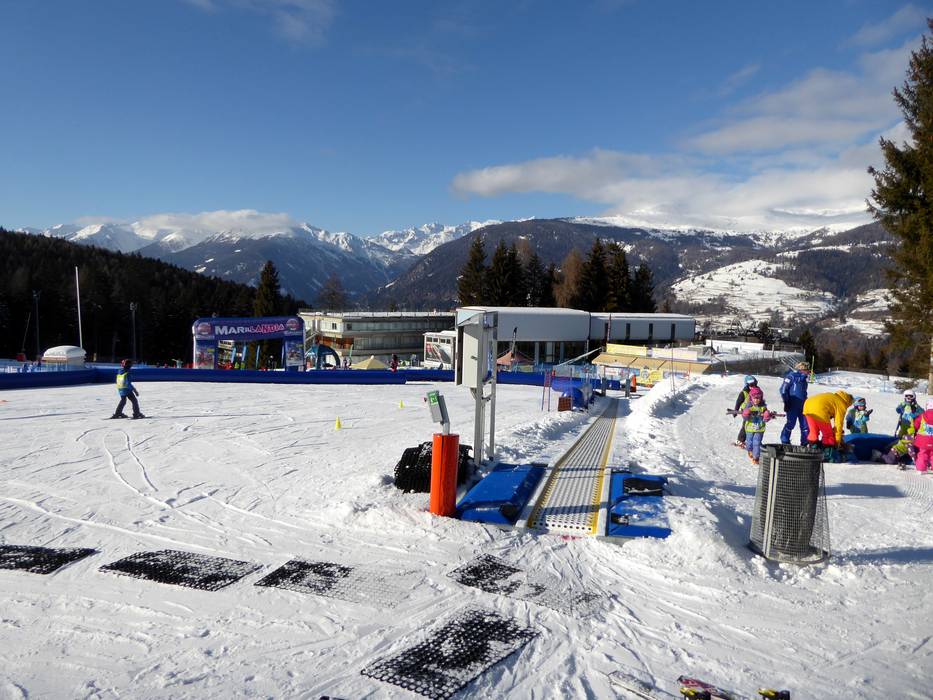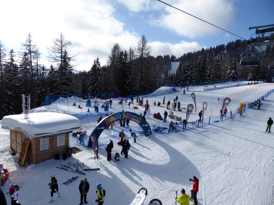 Der Familypark (Kinderland) befindet sich direkt an der Bergstation der Gondelbahn von Pinzolo in Prà Rodont. Wer die ersten Schwünge gelernt hat kann dann gleich nebenan auf das Förderband und auf die leichte Übungspiste.