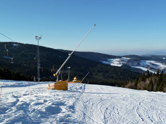 Die Region um St. Englmar ist grundsätzlich schneesicher. Die Abfahrten am Doppelschlepplift Predigtstuhl I sind zusätzlich beschneit.