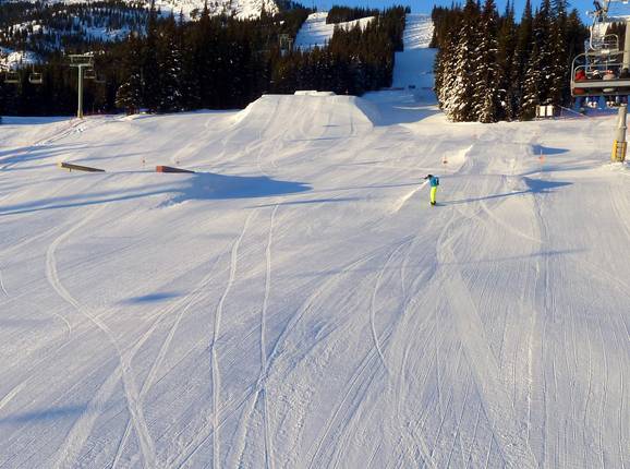 Der Rogers Terrain Park befindet sich im unseren Bereich vom Skigebiet Marmot Basin. Hier kommen Anfänger und Könner voll auf ihre Kosten. Zusätzlich gibt es an der Talstation des Eagle Ridge Quad Chair einen Mini Rail Park.