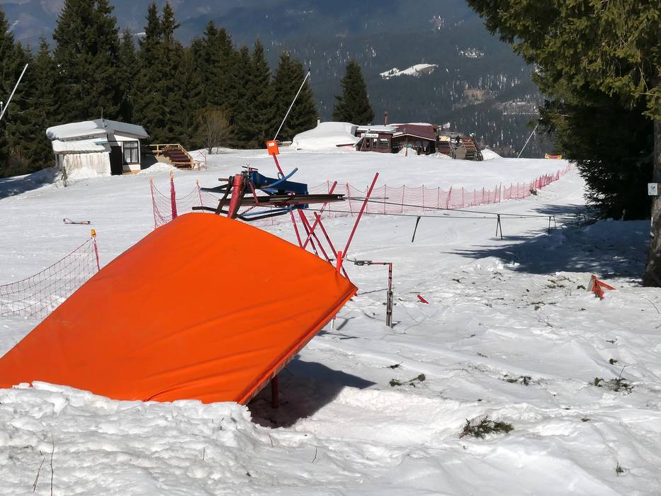 An der Bergstation der Sesselbahn surrt ein Seillift zum Üben. Bei ausreichendem Schnee führen leichte Pisten ins Tal. Die beschneite rote Hauptpiste ist für Anfänger zu anspruchsvoll. Skischulen und Skiverleih stehen bereit.