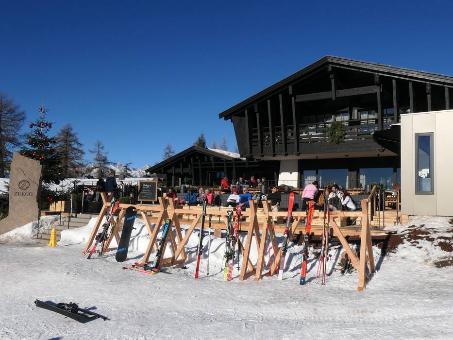 Das Berg-Restaurant Zuegg verwöhnt tagsüber mit bodenständigen Südtiroler Gerichten mit raffinierten Kreationen. Die moderne Architektur hat alpinen Charme. Die sonnige Terrasse lädt zum Verweilen ein. Die angeschlossenen luxuriösen Chalets bieten sich zum Übernachten an.