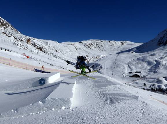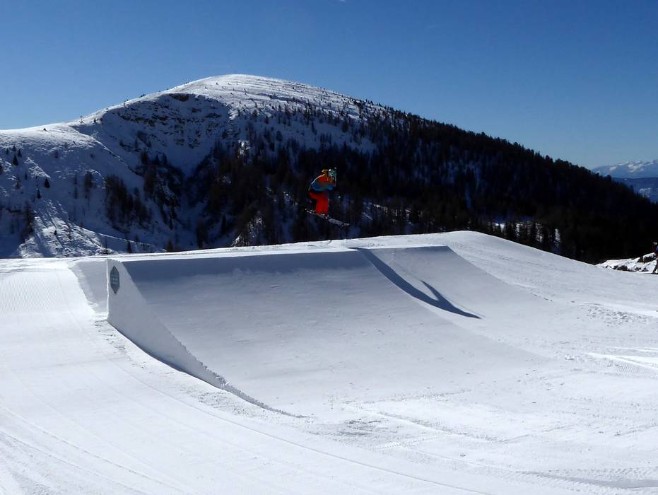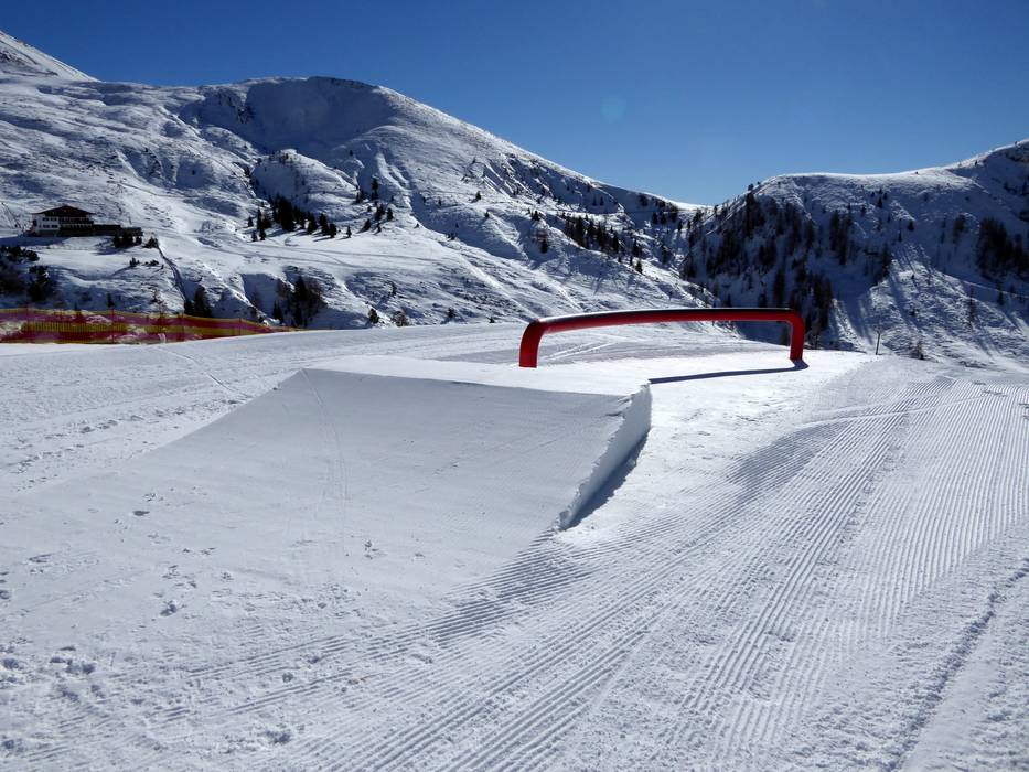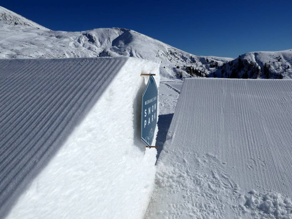 Das Skigebiet Meran 2000 bietet einen schönen Snowpark an der Oswaldpiste.