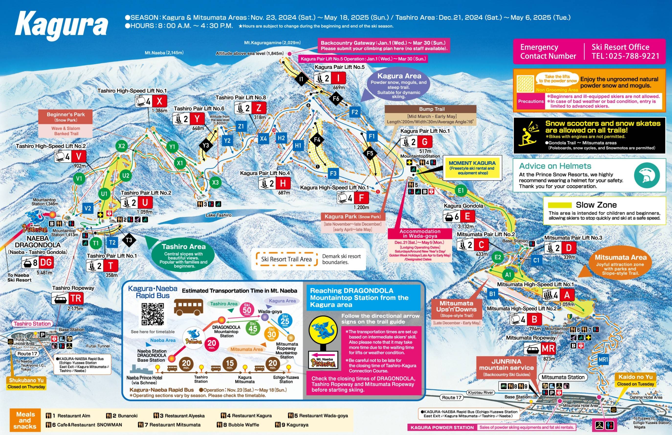 Pistenplan Mitsumata/​Kagura/​Tashiro (Mt. Naeba) Saison 2024/2025