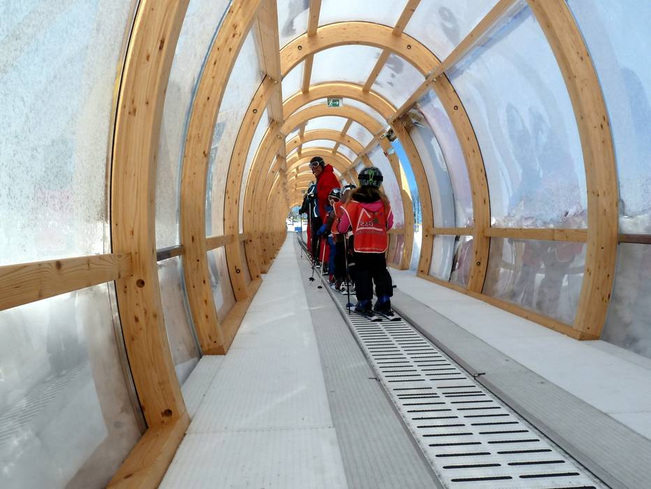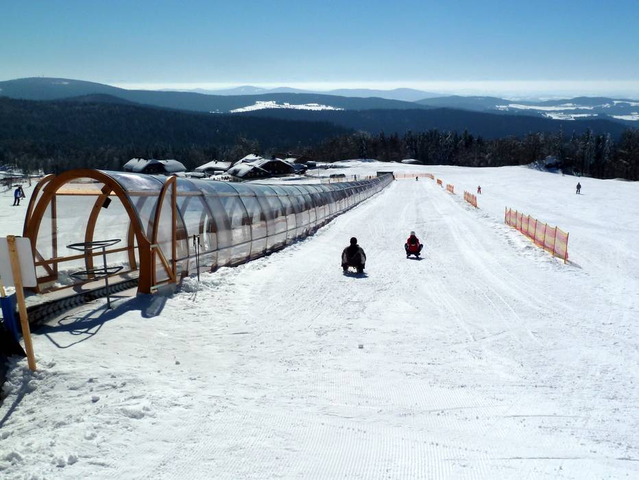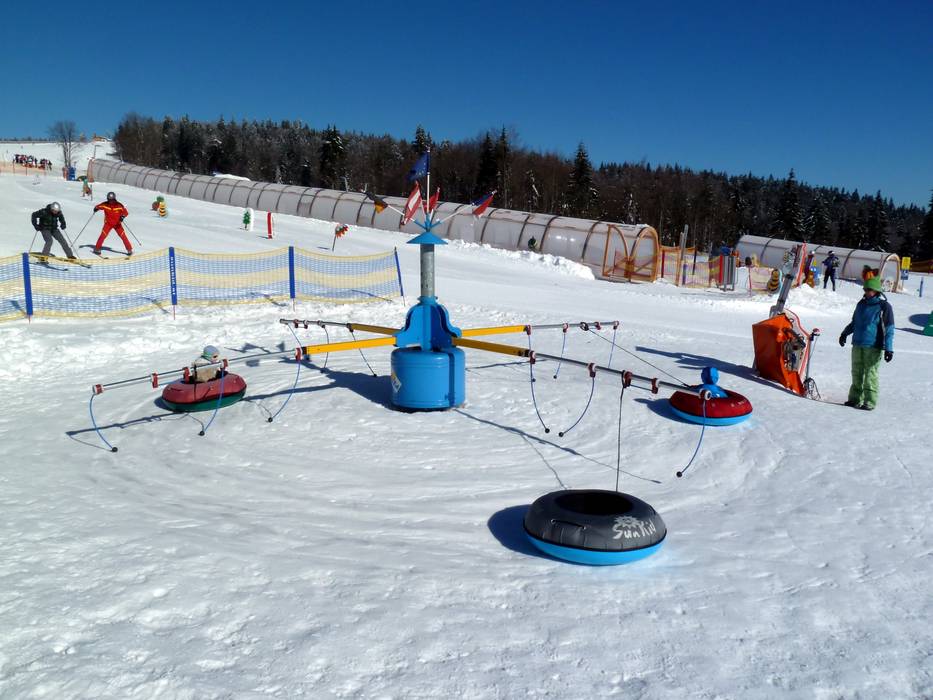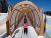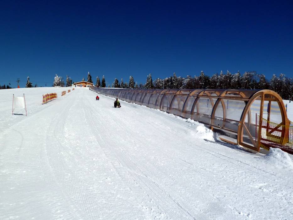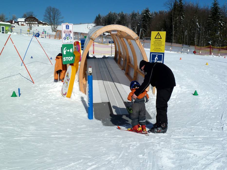 Auf der Almwiese wartet ein 186 m langes überdachtes Förderband mit Rodelbahn und Rodelverleih an der Talstation Alpe. Das Förderband erschließt auch ein Übungsgelände zum Skifahren.