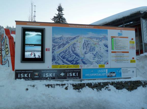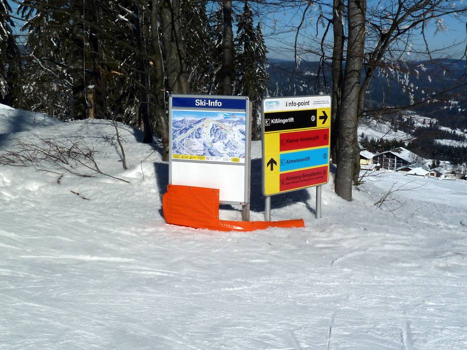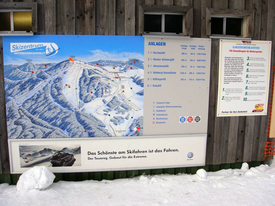 Orientierung (Pistenplan, Informationstafeln, Ausschilderung) und Sicherheit im Skigebiet Mitterdorf (Almberg) – Mitterfirmiansreut