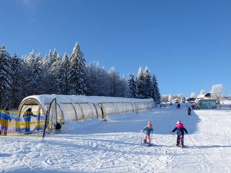 Das Skigebiet Mitterdorf im Bayerischen Wald gilt als besonders familienfreundlich. Nahezu alle Pisten sind ideal für Familien geeignet und die Sesselbahnen verfügen über Kindersicherungen. Der Junior-Ski-Zirkus bietet ein hervorragend ausgestattetes Übungsgelände für Ski-Zwergerl und Anfänger – mit überdachten Förderbändern und kindgerechtem Lehrmaterial, perfekt für die ersten Erfahrungen auf den Brettern. Eine Rodelbahn mit eigenem Förderband rundet das Angebot ab. Besonders attraktiv sind zudem die günstigen Familienkarten.