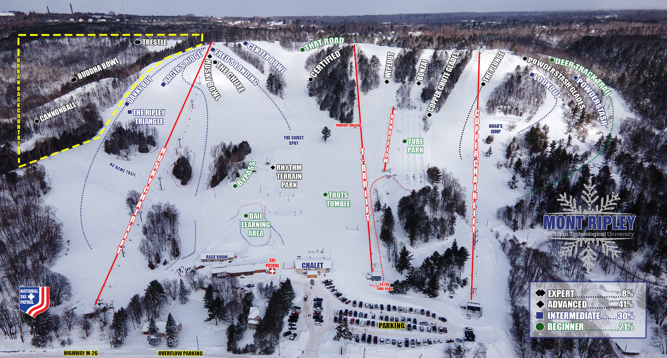 Pistenplan Mont Ripley Saison 2025/2026
