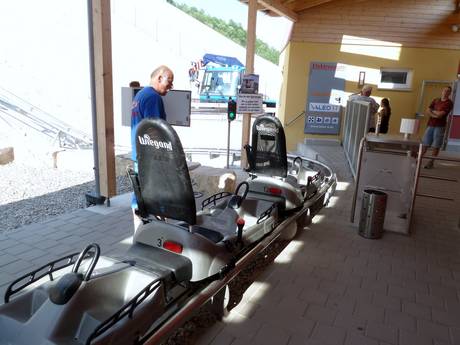 Der Alpine Coaster der Firma Wiegand ist beliebt bei alt und jung. Über 800 m geht die rasante Fahrt vom Monte Kaolino über eine Steilkurve, 360 Grad-Superkreisel und Wellen zurück zur Talstation.