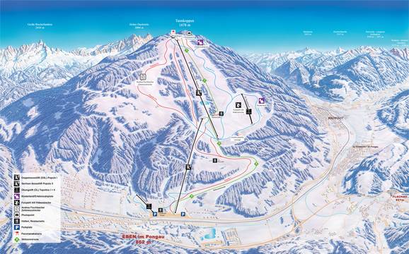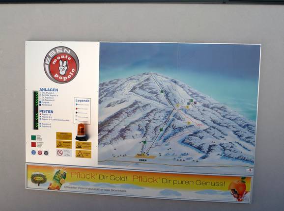 Orientierung (Pistenplan, Informationstafeln, Ausschilderung) und Sicherheit im Skigebiet Monte Popolo – Eben im Pongau