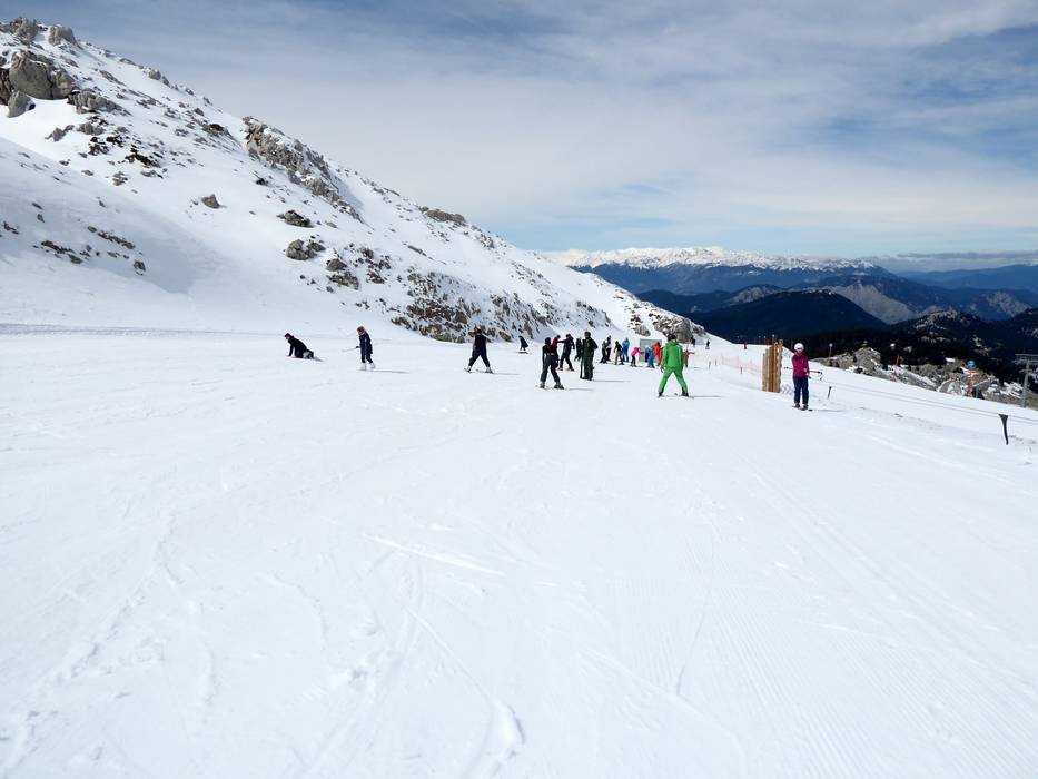 Das Parnassos Ski Center ist bei Anfängern sehr beliebt und bietet 4 verschiedene Übungsbereiche mit Seilliften und Förderband. Diese Bereiche befinden sich an den Bergstationen der Gondelbahnen vom Tal und sind kostenfrei zu benützen. Man kann auch mit dem Auto bis Fterolakka 1850 fahren und dort üben. Es gibt auch Einzelfahrkarten für die Gondelbahnen. Zudem kann nahezu das komplette Skigebiet auf leichten und breiten Pisten befahren werden. Für die Verbindung von Kellaria nach Fterolakka nimmt man bequem die Gondelbahn. Zu den beiden Talstationen führen leichte Talabfahrten. Die örtlichen Skischulen bieten entsprechende Skikurse mit an.