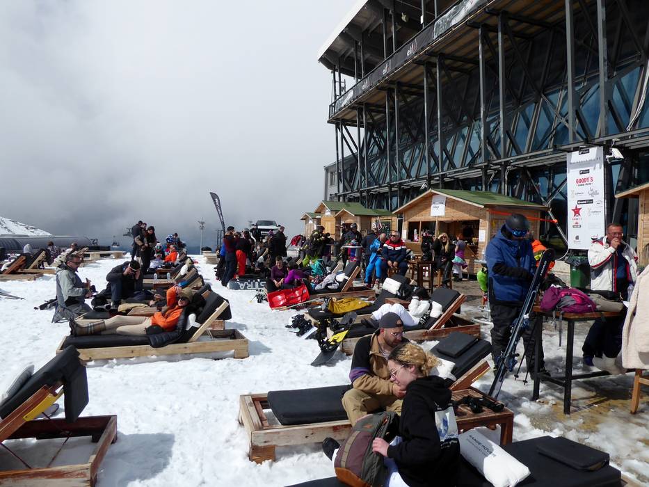 An den Wochenenden feiern die Wintersportler bei guter Musik vor dem Chalet. Ein DJ heizt ordentlich ein. Hier ist dann richtig Party angesagt.