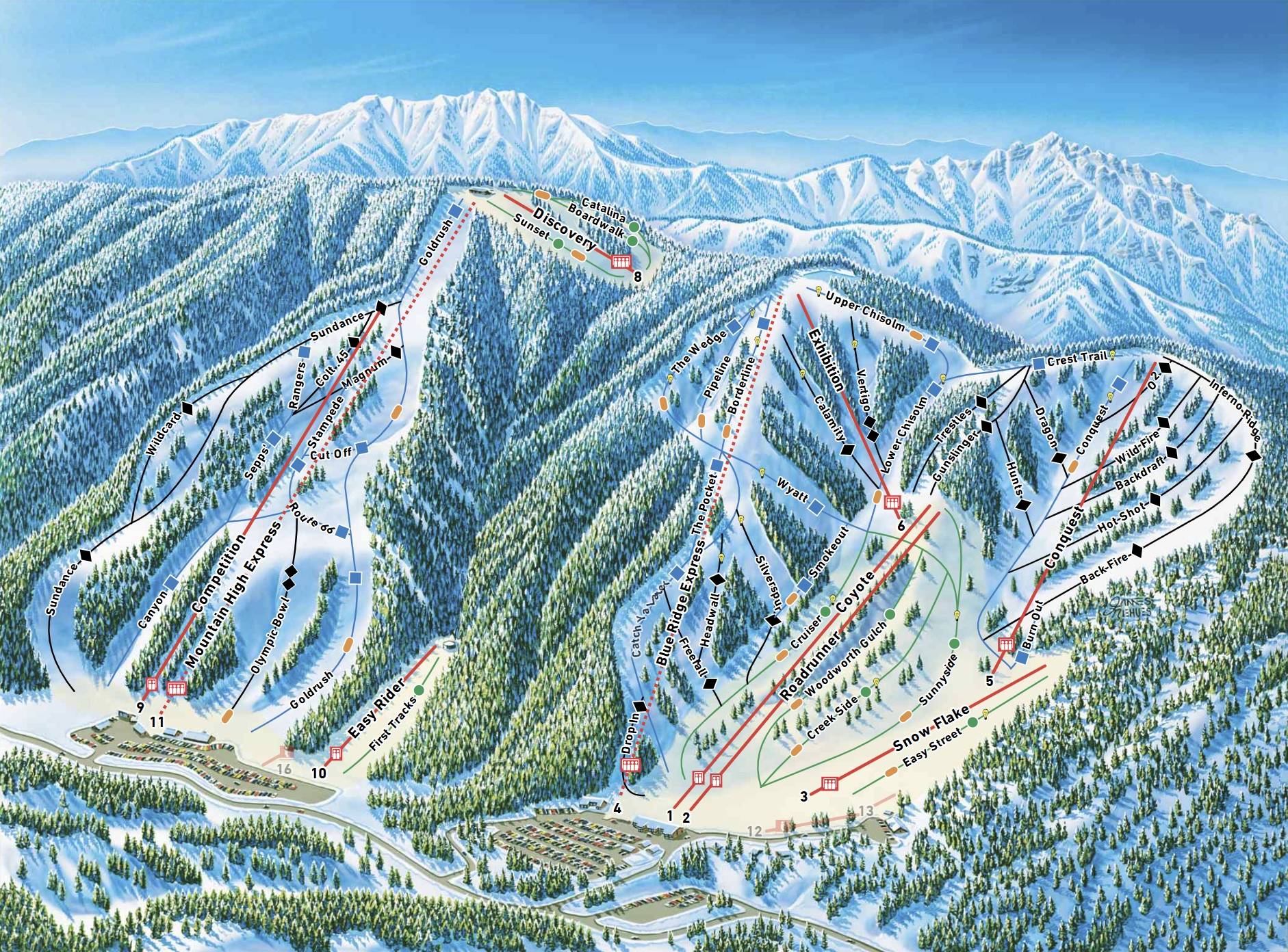 Pistenplan Mountain High East & West Resort Saison 2024/2025