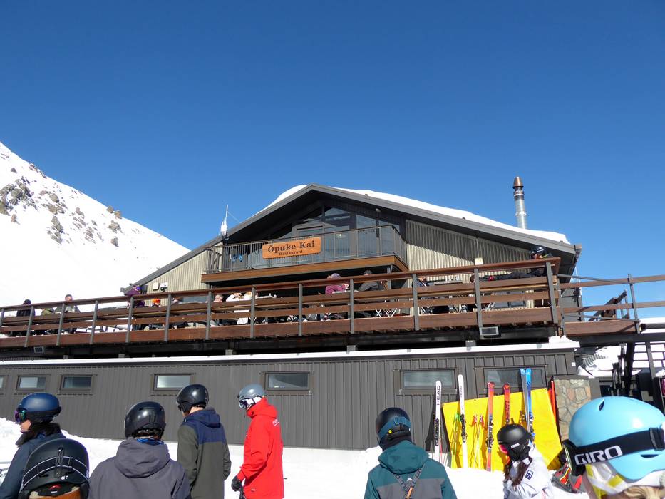 An der Talstation neben den Parkplätzen kann man sehr gut um Ōpuke Kai Restaurant und im Sky High Café mit der Sixteen10 Espresso Bar einkehren. Bei schönem Wetter wartet eine große Sonnenterrasse. Oben im Skigebiet gibt es die Corona Bar.